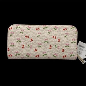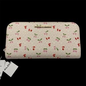 NWT Aldo Zip Around Wallet Clutch in light pink monogram with scattered pink and red heart shaped cherries.