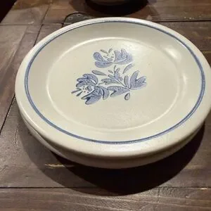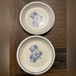 Pfaltzgraff Stoneware Cream Blue Floral design. Durable glazed ceramic with a soft blue rim and floral design. Easy to style with casual or farmhouse table settings. Small plates See pictures for more detail details and measurements all in excellent condition with no cracks or chips. I have two sets of two.