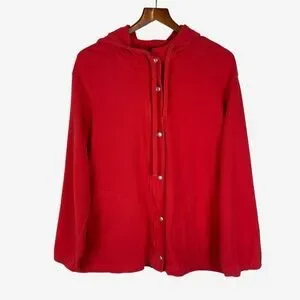 Eileen Fisher Woman Organic Cotton Full Zip Hoodie Size 2X Tomato Red Pockets