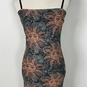 Women's Y2K Aesthetic Boho Maxi Dress Sun Pattern Festival Summer Size Small