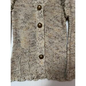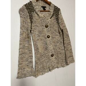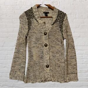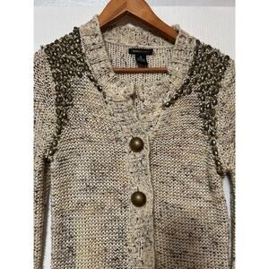 BCBG MAXAZRIA Womens Tan Brown Beige Studded Beaded Big Button Sweater Jacket M