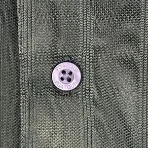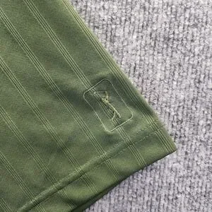 Item: Mens polo shirt in green with subtle tonal vertical stripe texture.