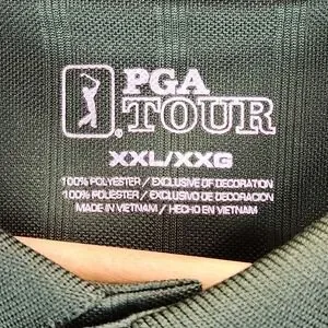 Brand details: PGA TOUR engraved buttons; golfer logo embroidery on sleeve.