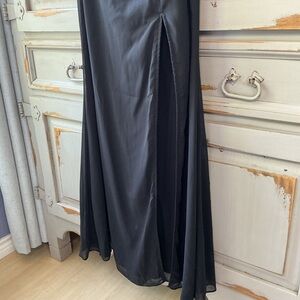 NWT Lulus | Graceful Entrance Black Chiffon High-Slit Long Sleeve Maxi Dress Med