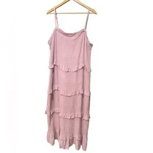 Effortless and feminine, this Ava & Viv Smocked Ruffle Midi Tank Sundress is perfect for warm-weather days and casual outings. Designed with a flattering smocked bodice that offers stretch and comfort, it features ruffle accents for a touch of charm. The midi length provides easy movement while keeping the look stylish and versatile. Sleeveless with wide tank straps, it’s ideal for layering or wearing on its own.
