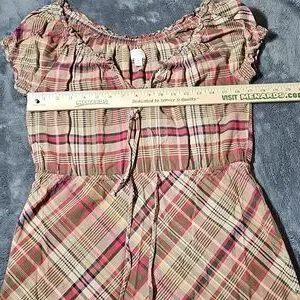 Converse Short Sleeve Plaid Earth Tone Cotton Ruffle Trim Dress Size M