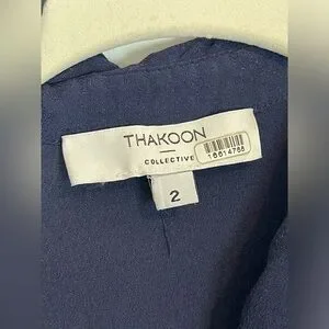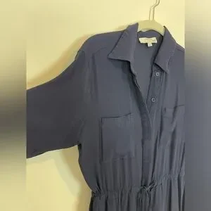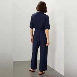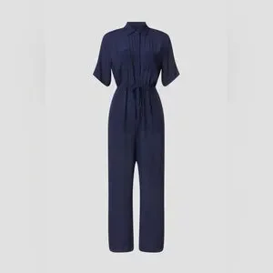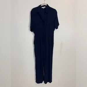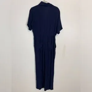 Thakoon Collective Navy blue Short Sleeve Jumpsuit SZ 2 viscose rayon drawstring