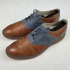 Cole Haan NikeAir Air Sole Saddle Brown Blue Leather Oxford Dress Shoes Sz 9 M