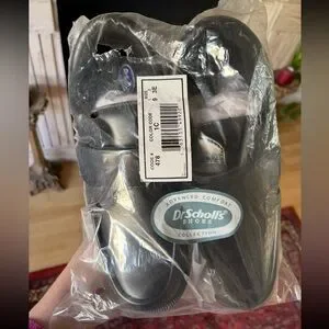 DR. SCHOLL’S Black NEW Double Air-Pillo Insoles Leather EZ Strap Slip On Sz 9