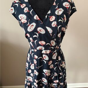 J. Crew Floral Navy & Red Faux Wrap Short Sleeve Zip Dress Size 6