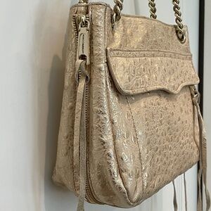 Rebecca Minkoff Ostrich Swing Bag Metallic Champagne Leather