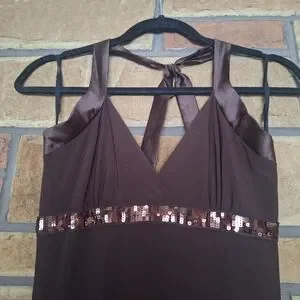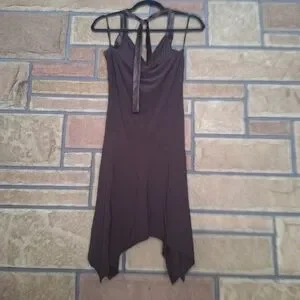 Taboo Vintage Y2K Espresso Brown Asymmetrical Hem Halter Mini Dress M