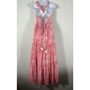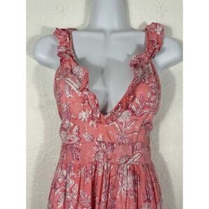 Madison Mathews Maxi Dress Women’s Size M Pink Sleeveless Floral Cotton VNeck
