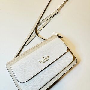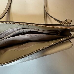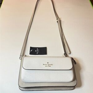 Chic cream crossbody by Kate Spade. Sleek design with adjustable strap. Ideal for versatile styling.