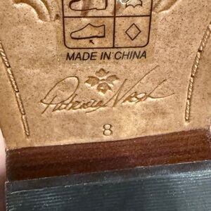 Elegant pointed mules by Patricia Nash. Black suede upper with decorative light contrast stitching. Leather-trimmed stacked sole. Slip-on design for effortless wear.