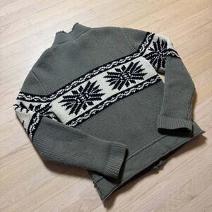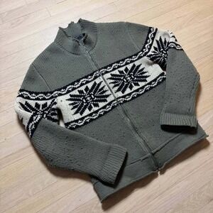Brody Mens Lambswool Blend Full Zip Nordic Snowflake Sweater Green Size M