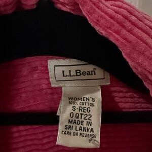 Soft corduroy fabric with visible ribbed texture. Button-front shirt jacket style. Oversized look. Single chest pocket detail. Casual, easy-to-wear silhouette. Vintage LL BEAN size small