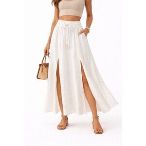Joie White Linen Maxi Midi Skirt Elastic Waist Resort Boho Beach S
