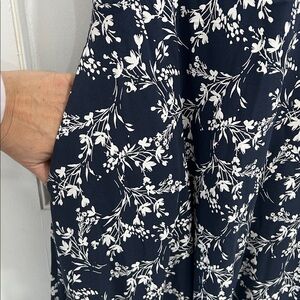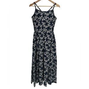 PACT Organic Cotton Fit and Flare Midi Dress in Navy White Floral Print NEW - L