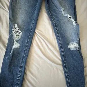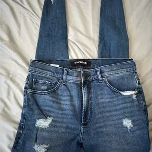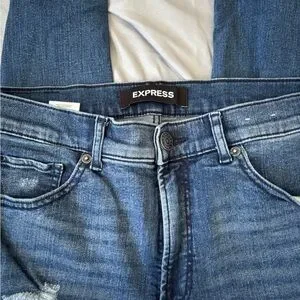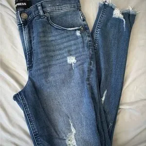 Express Women’s Dark Blue Distressed Skinny Jeans