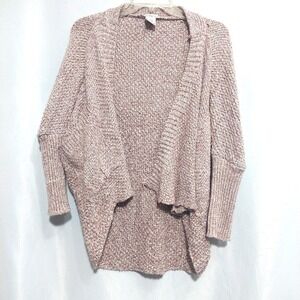 American Rag Womens S/M Cropped Cardigan Crochet Style Long Ribbed Sleeves Mauve