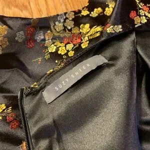 Vintage 90s Suzy Shier Floral Satin Cheongsam Qipao Mini Dress Black XL