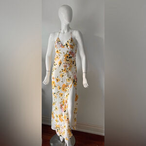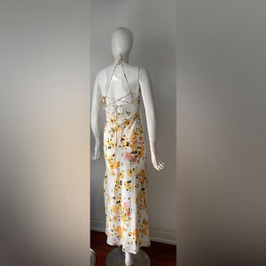 Princess Polly Yellow Floral Maxi Dress Open Back Tie Strap Slip Dress Size 2