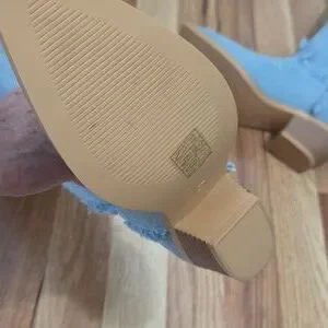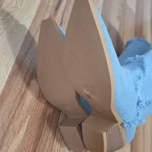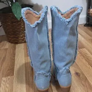 Step out in style with these chic frayed denim knee-high boots. Perfect for adding a trendy touch to any outfit. NEW Nonsmoking home FAST SHIPPING SAME DAY