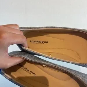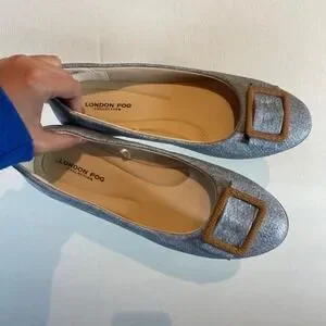 London Fog Bixby Blue Denim Buckle Ballet Flats Womens 7.5W Wide Slip On Shoes