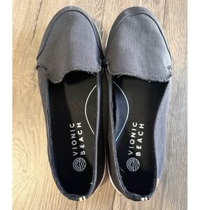 Vionic Beach Manzanita Black Canvas Slip On Sneakers Womens 7.5 Wide Orthopedic