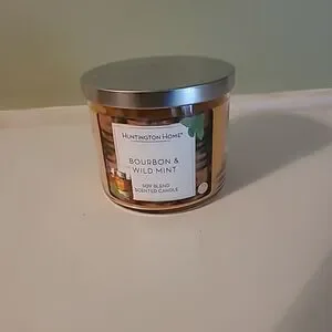 Pre-owned in new unused condition. Soy blend scented candle. The scent is Bourbon & Wild Mint. 14 oz.