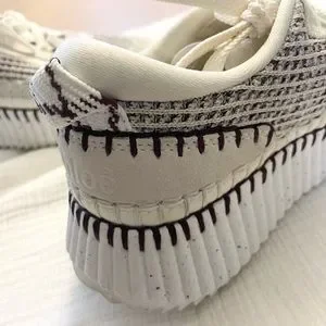 Chloé's bold 'Nama' sneakers are consciously crafted from a combination of recycled-mesh that's carefully stitched by hand and suede stamped with the logo. They're embroidered with threads in neutral hues and set on chunky, ribbed soles that are surprisingly lightweight.