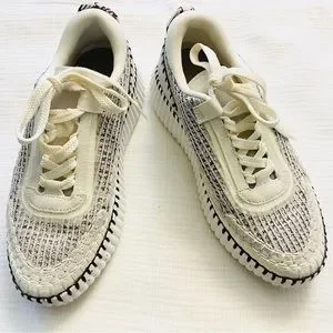 CHLOE Nama Embroidered Suede Mesh Sneakers Size EU 36