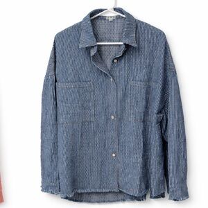 POL Denim Blue Striped Button-Up Shacket - NEW