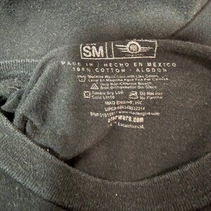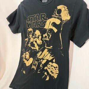 Authentic Star Wars graphic tee by Mad Engine featuring iconic characters including Darth Vader. This piece is from the pre-Disney Lucasfilm era, making it more desirable to collectors and fans of original-era merchandise.