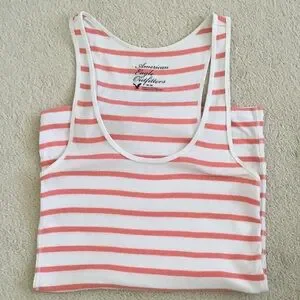 AMERICAN EAGLE OUTFITTERS White and Coral Striped Ribbed Tank - size M