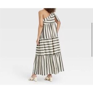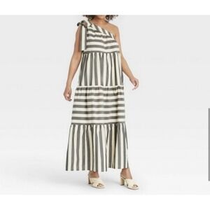 NWT 'Who What Wear' One Shoulder Sundress Womens XS Black/White Stripe w/Pockets