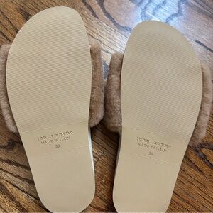 Experience ultimate comfort with Jenni Kayne's plush brown fur sandals. Ideal for relaxed days. Perfect as sandals or slippers. So cute! Never worn.