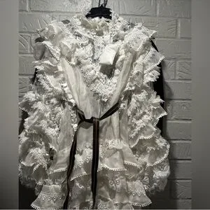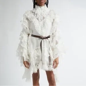 New Authentic Zimmermann Crush Heart Trim Long Sleeve Minidress Size Medium