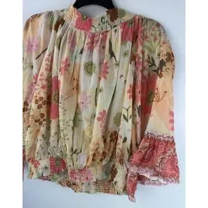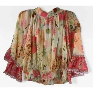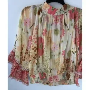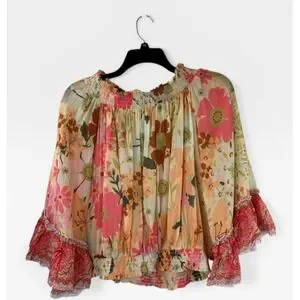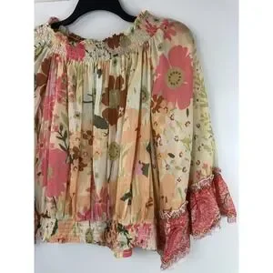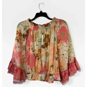Aratta Silent Journey Daisy Floral Ruffled Cotton Blouse Off The Shoulder Large