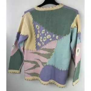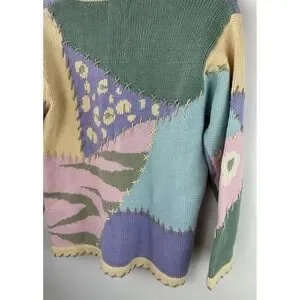 Storybook Knits Patchwork Spring Themed Cardigan Sweater Ramie Cotton Size Large