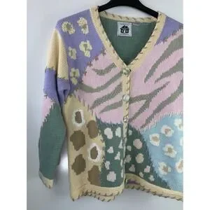 Patchwork Spring Themed Cardigan Sweater