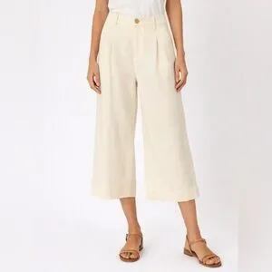 Elevated minimalist style with these Vince cropped wide leg pants in a soft cream/ivory tone. A perfect capsule wardrobe staple featuring a relaxed culotte silhouette and breathable linen blend fabric.