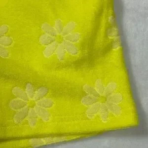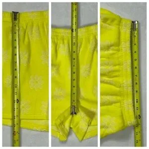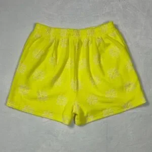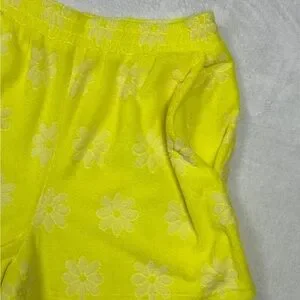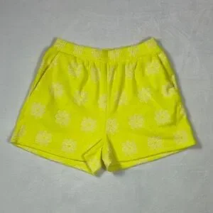 Entro Yellow & Beige Daisy Terri Cloth High Waist Shorts, size S, side pockets, elastic at the waist, the color is less intense, the color looks stronger due to the lights, the color is like the model's shorts, it is new without a tag in excellent condition, sammer, beach, pool, casual, vacation.