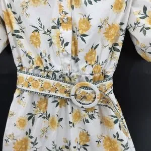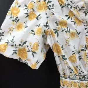 Joie White yellow floral puff sleeve mini dress Azaleia spring summer flirty 10