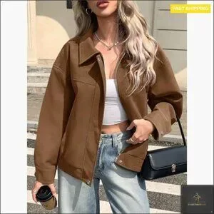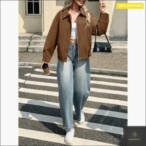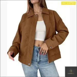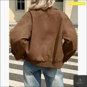 Faux Suede Motorcycle Jacket Oversized Zip Up Bomber Coat Women's Outerwear