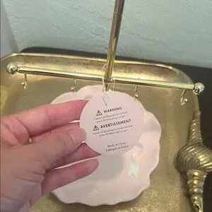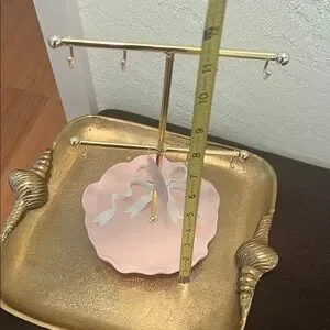 Elegant gold jewelry stand with a pink base. Perfect for organizing earrings.