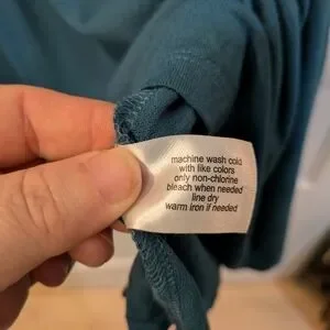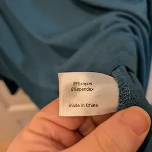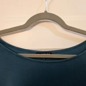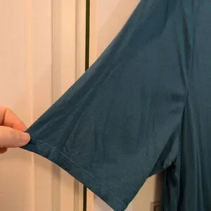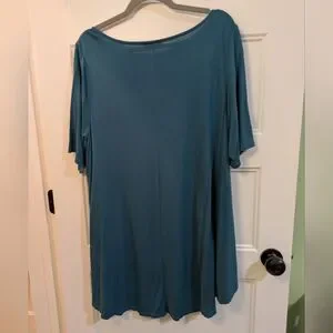 Relaxed swing tunic with short sleeves. Simple crew neckline for easy layering. Soft, drapey fabric for comfortable wear. Versatile teal shade pairs well with neutrals. In excellent condition and from a smoke free home.