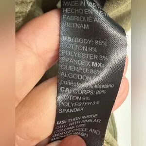 • Fabric: 88% cotton, 9% polyester, 3% spandex