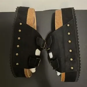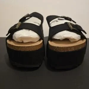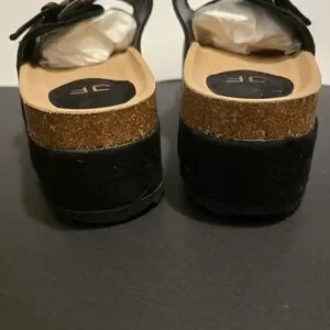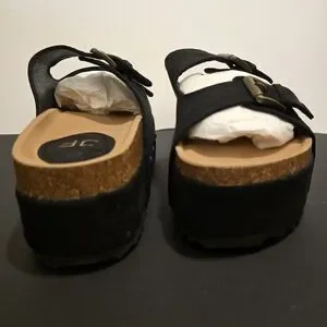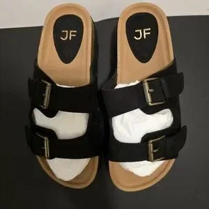 JUSTFAB Black Platform Sandals Slip On Flat Shoes Casual Summer Vacay Size 9